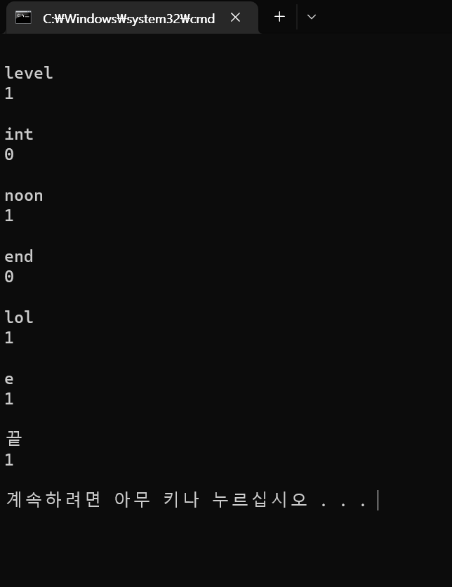 string end = "끝";