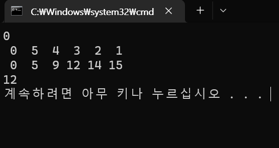 sumarr[i] = sumarr[i - 1] + arr[i]; // i 가 1일때 sumarr[1]의 값은 sumarr[1 - 1] = sumarr[0] = 0 번째 배열 + sumarr[1] = 5 결론 : 0 + 5 = 5