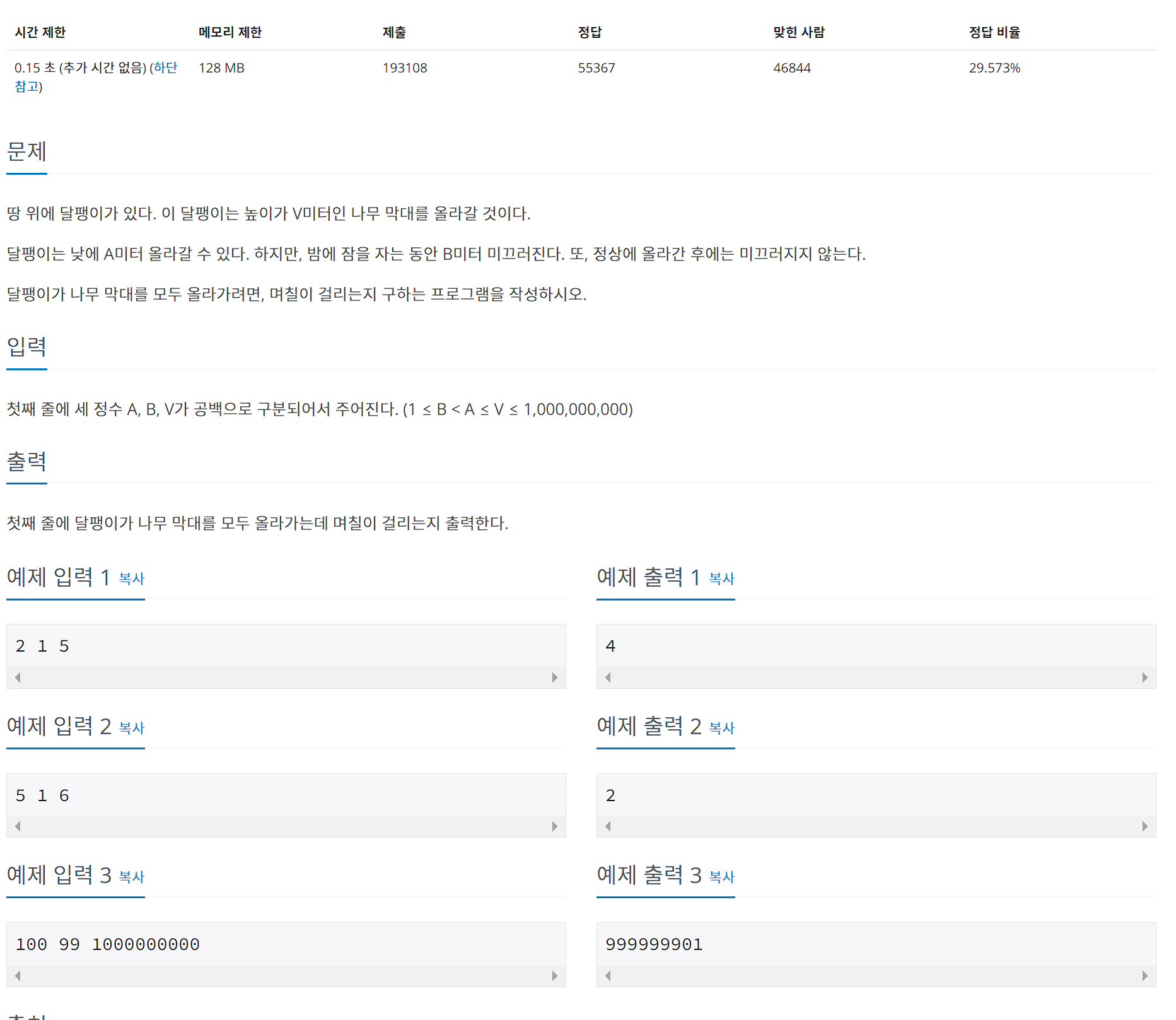 day = (V - B) / (A - B);