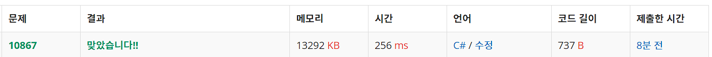 | [BOJ] 1259번 팰린드롬수 C# 사용 풀이 (0) | 2023.01.26 |