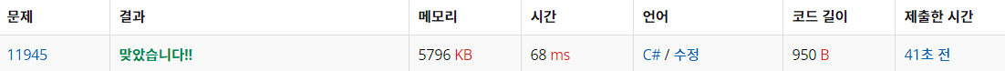 | [BOJ] 5524번 입실 관리 C# 문제 풀이 (0) | 2023.02.05 |