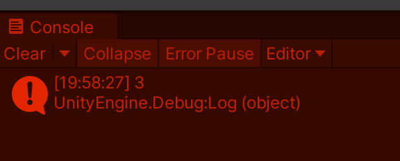 게임뷰 화면에서 각각의 버튼을 클릭하니 이게 무슨 "3"을 콘솔 로그에 표시해주는게 아닌가?