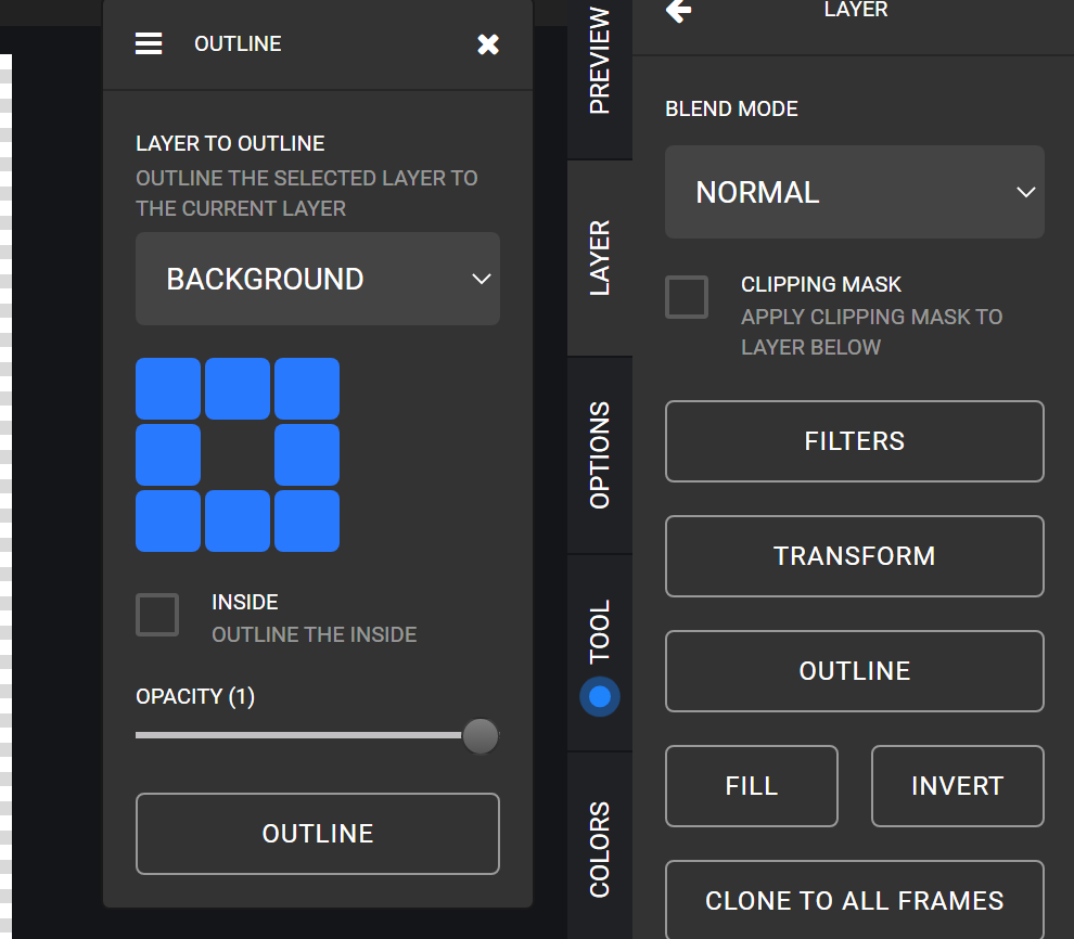 - 아웃라인을 자동으로 따주기 때문에 캐릭터 스프라이트 안에서 아웃라인을 딴다 하여도 스프라이트가 1픽셀씩 늘어날수 있음
