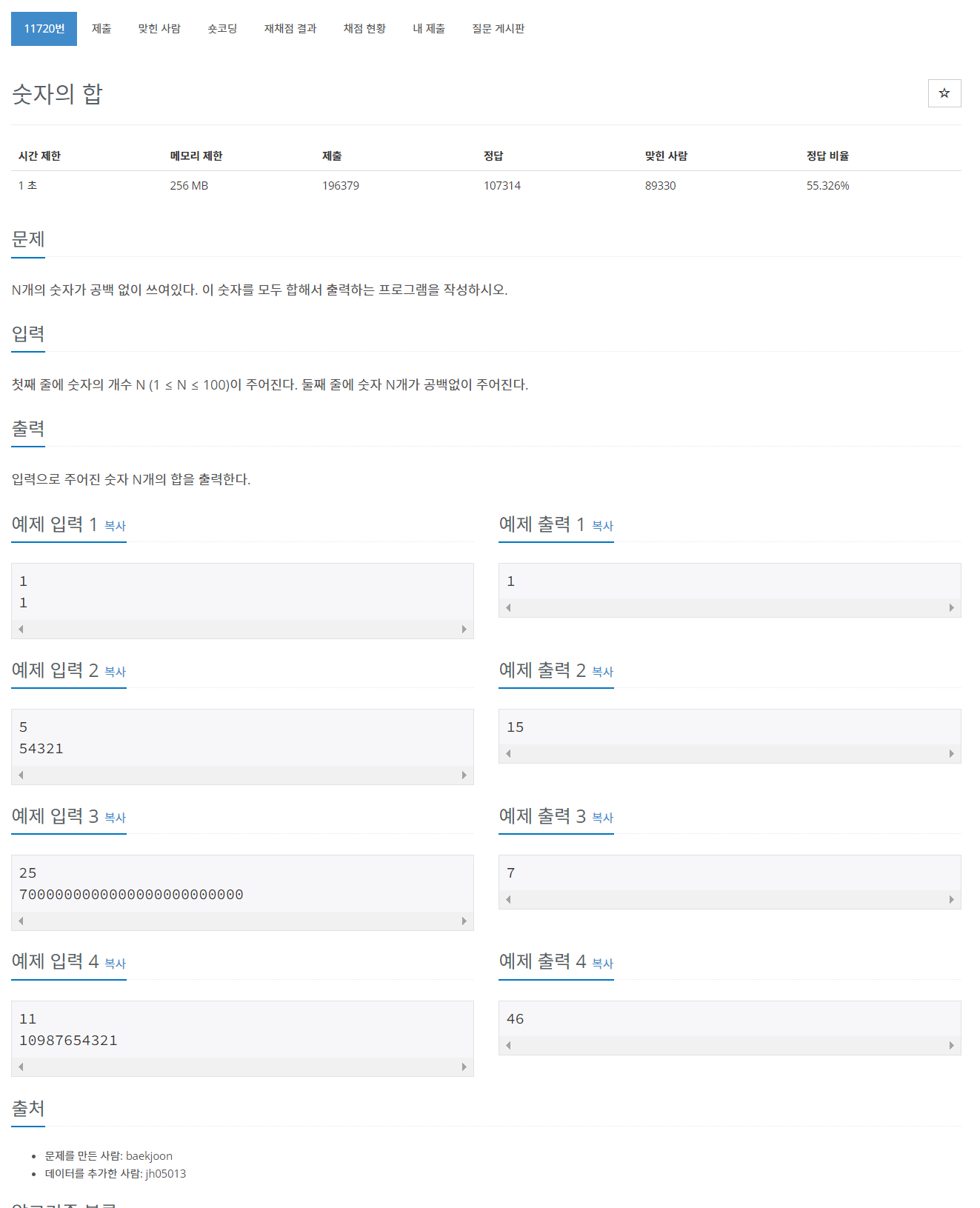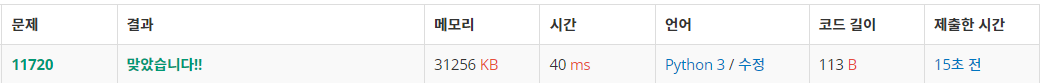 - sum 함수를 이용하여 입력받은 문자열을 (map함수 사용) 그대로 전부 더해 출력하는 방법이 2번이다.