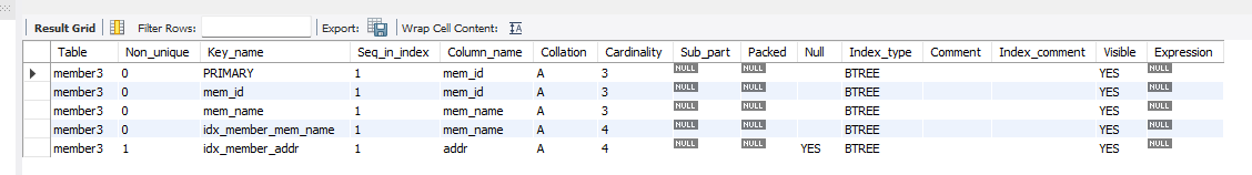 drop index idx_member_addr on member3; # 인덱스 삭제