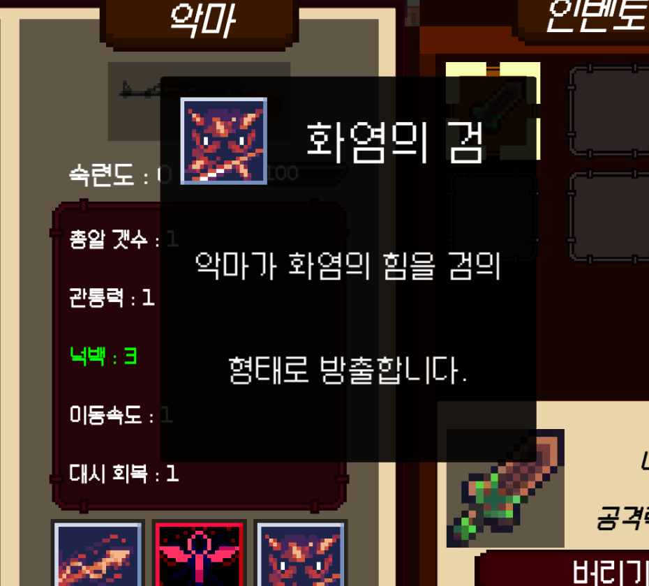 - 인벤토리 장비 세부 팝업 글씨 크기 증가 및 버튼 크기 증가