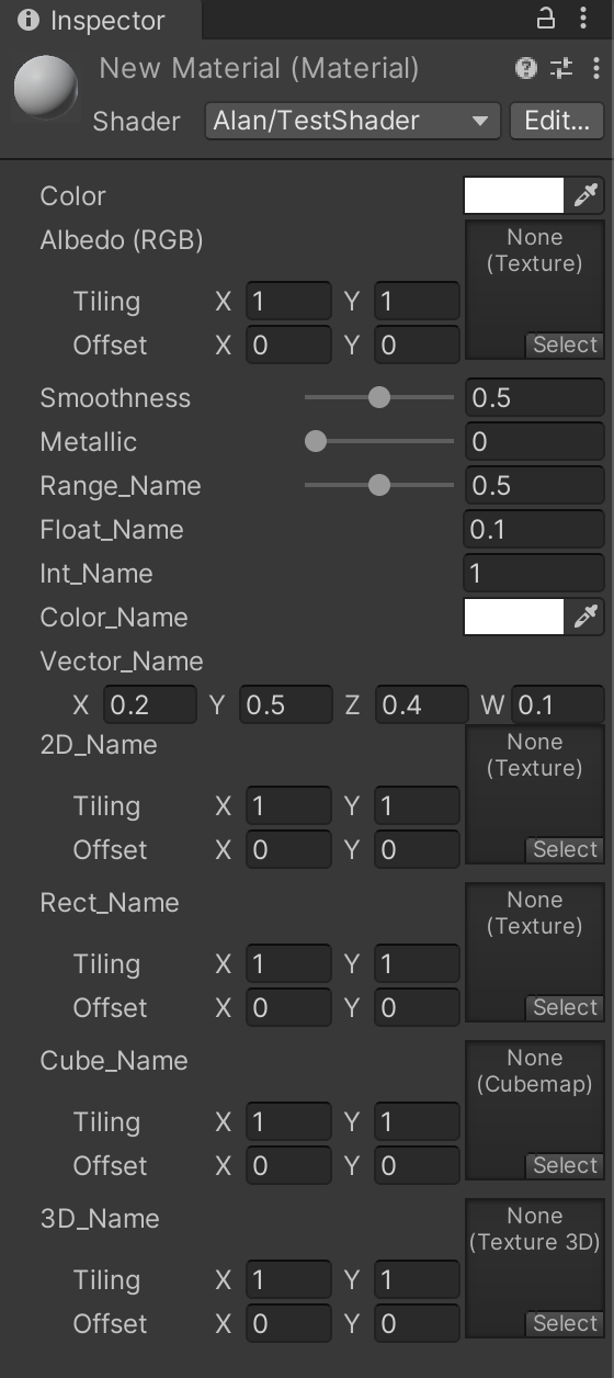 - 쉐이더 프로퍼티들은 C# 스크립트의 프로퍼티 혹은 전역변수들과 동일하게 초기화도 가능하다.